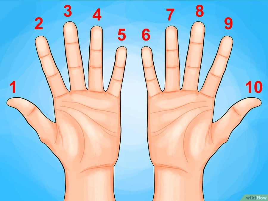 Умножение на девять 1. Держите руки перед собой ладонями вверх. Каждый из десяти пальцев соответствует числу. Посчитайте от одного до десяти, двигаясь от левого до правого указательного пальца. 2. Загните палец, число которого вы хотите умножить на девять. Например, если вы хотите решить пример 9x3, то загните средний палец левой руки. Средний палец соответствует числу три, так как это третий палец, если считать от одного до десяти, начиная с левого указательного пальца. 3. Посчитайте оставшиеся пальцы слева и справа, чтобы решить пример. Для начала сосчитайте пальцы слева от загнутого пальца. В данном случае у вас получится два. Затем сосчитайте пальцы справа от загнутого пальца. У вас должно получиться семь. Первая цифра ответа – это 2, а вторая цифра – 7. Получается 27! 4. Попробуйте умножить на девять другие числа. Как вы умножите 9 на 2 с помощью пальцев? А если 9 на 7?