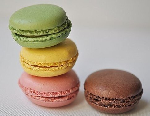 Французские пирожные "Макаруны" Ингредиенты Для печенья: Яйца - 6 шт. Щепотка соли Сахарная пудра - 400 г Молотый миндаль - 250 г Краситель - 1,2 капли (Желтый, розовый, зеленый, коричневый) Для начинки: Сахарная пудра - 350 г Сливочное масло - 250 г Молотые фисташки - 1 ч.л. Лимонная цедра - 1 ч.л. Клубничное варенье - 1 ч.л. Какао - 1 ч.л. Ваниль - 1 ч.л. Сливки - 1 ст.л. Приготовление Отделяем белки от желтков. Белки взбиваем до пышности. Добавляем сахарную пудру и все нужно взбить до однородности. Добавляем молотый миндаль и аккуратно смешиваем. Разделяем получившуюся массу на 4 части. В каждую часть добавляем немного красителя красителя( по капли) При помощи кулька или специального пекарского мешочка, выкладываем печенья на противень, который нужно застелить пергаментной бумагой. Печенья должны получится примерно одного размера, так как потом мы будем их складывать. Для удобства, вы можете начертить кружки на бумаге одного размера. Печенье нужно оставить минут на 30. Верхуш