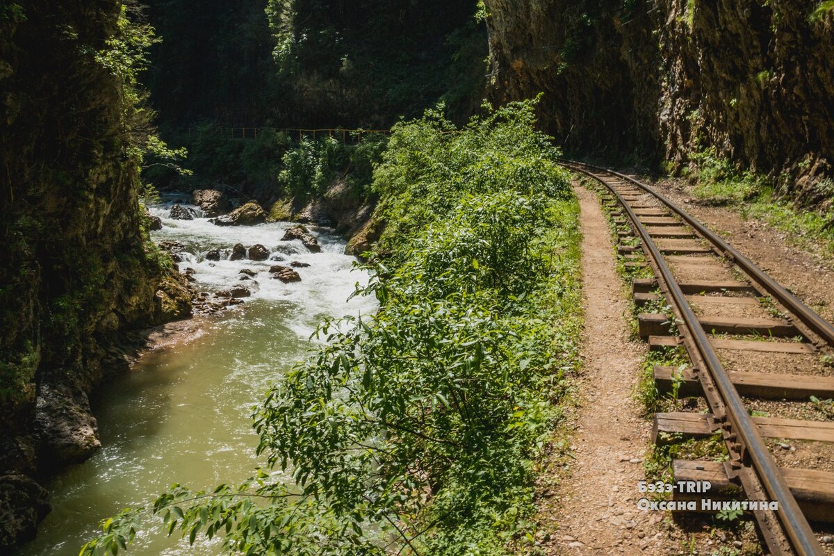 У нас предостаточно красoт не хуже, чем за границей, но не всегда на них обращают внимание. О Гуамском ущелье знают практически все жители Краснодарского края и некоторые гости, приезжающие из других региoнов. Но поскольку большинство все же приезжает, чтобы искупаться в море и полежать на пляже, горные красоты остаются за кадром. А ведь трехкилометровый каньон с перепадами высот до 400 метров - это вполне себе повод, чтобы съездить и приобщиться к иному виду природы. Река Курджипс продирается сквозь толщу скал, пихаясь, словно пытаясь освободить себе еще чуточку места. На некоторых участках стены каньона столь плотно сжимаются, что, кажется, можно стоять между ними, касаясь руками обеих, но там течет река и проверить не получается. По длине всего ущелья лежит пеший маршрут, который под силу преодолеть каждому, а до середины дороги можно вообще доехать на экскурсионном поезде, используя узкоколейную железную дорогу. Строили эту дорогу совсем не для туристов, а для того, чтобы связать