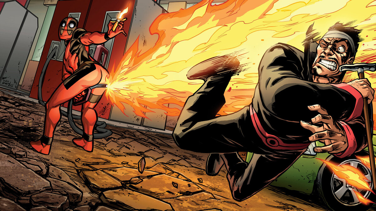 Самая забавная любовная линия в жизни Уэйда, хотя на его счету было множество разных и странных особ с которыми он крутил роман. В пример можно поставить Шиклу (бывшая девушка дракулы). Но со смертью вышло все намного ироничней, как мы знаем, чтобы быть с Леди Смертью нужно быть по факту мёртвым, Уэйд зацепил её когда над ним проводил опыты Танос, это был самый нестандартный любовный треугольник в истории комиксов. И однажды Уэйд нашел способ как быть с Леди Смерть, но Танос все обломал и наложил на Уэйда заклятие бессмертия. Обидно, была бы чудесная пара которая отлично подходила друг другу.