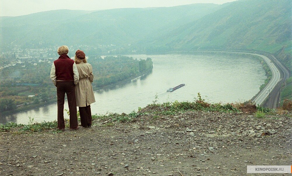 Роуд-муви Ложное движение - первый широко известный фильм немецкого режиссёра Вима Вендерса. Картина вышла на экран в 1975 году и стала второй в дорожной трилогии, состоящей также из чёрно-белых Алисы в городах (1974г) и С течением времени (1976г). Этим цветным фильмом 29-летний, на тот момент, режиссёр заложил основу для одной из ключевых тем его творчества - невозможности забыться и, одновременно, вспомнить и обрести себя, вспомнить правильные слова, чтобы верно поименовать мир. Невозможности, такой особенной в условиях послевоенной, разделённой Германии, где все чувства были обострены. Зритель проживает путешествие вместе с начинающим или, скорее, застрявшим на старте писателем Вильгельмом, в исполнении Рюдигера Фоглера (ведущий актёр во всей трилогии), его дорожным дневником и случайным набором попутчиков, репрезентирующих срез германского общества. Затяжные планы прогулок, железнодорожных путей, долгие молчаливые сцены подвешивают во времени. Смысловая структура фильма во