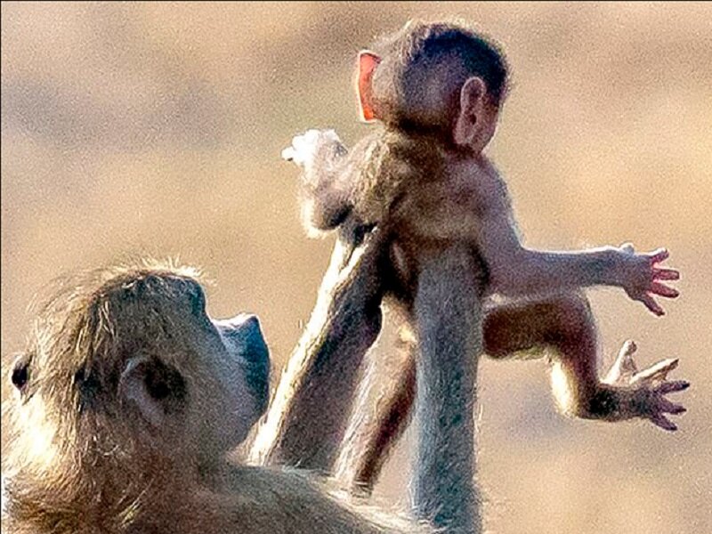 Известная сцена из легендарного диснеевского мультфильма «Король Лев», где новорожденный Симба был поднят в воздух, была восстановлена в реальной жизни обезьяной. Жизнь подражала искусству, когда мать подняла своего малыша вверх, чтобы воссоздать культовый кинематографический спектакль. Фотограф Дафна Бен Нун запечатлел этот момент во время своей поездки в Зимбабве. Это действие происходило всего мгновение, но оставило яркое впечатление, говорит фотограф. Источник: DailyMail Фото: DailyMail