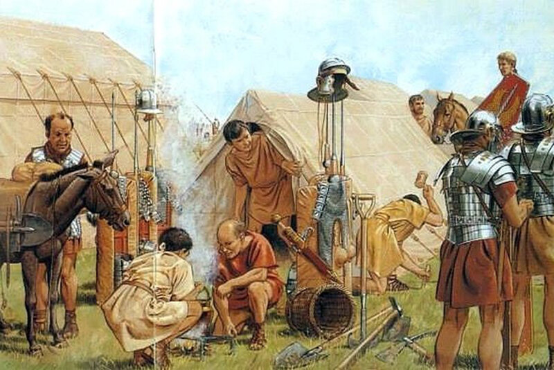 Поэтому бред некоторых сетевых «знатоков» о козах для уединенных утех римских солдат – полная чушь. Проблем найти женщину у них не было. Следуя походным порядком, легион каждый вечер устраивал стандартный лагерь. При этом обоз из «невоенных» оставался вне укрепленной территории. Может, и жёстко, но того требовала дисциплина – основа успехов римской армии.