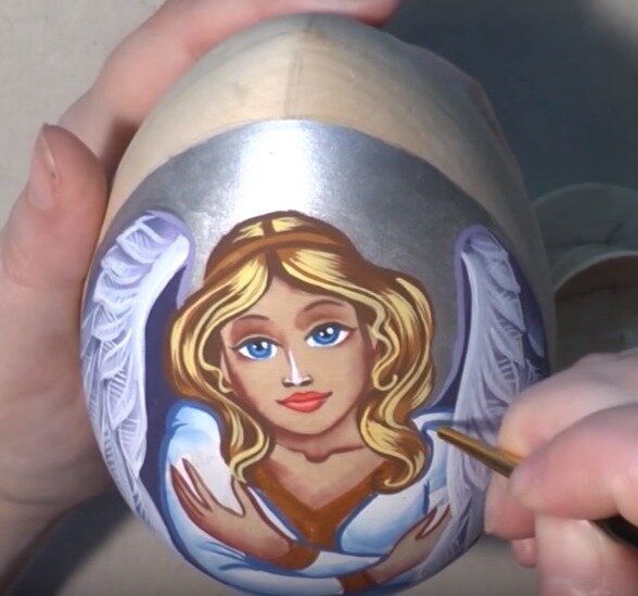 Я предлагаю более сложный вариант росписи личика матрешки. В своей прошлой статье я писала о том, как нарисовать простое круглое личико матрешке. Сегодня я расскажу, как нарисовать более взрослое, женственное лицо.