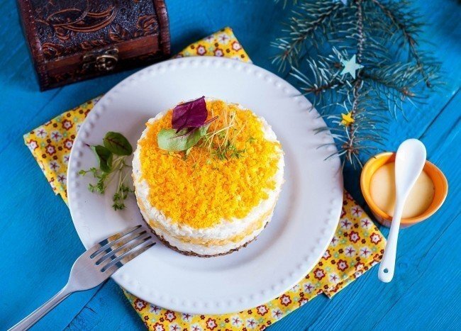 Ингредиенты: Пропаренный рис — 1 стак. Говяжья печень (можно заменить телячьей или куриной) — 500 г Отварные яйца — 4 шт. Твердый сыр — 200 г Консервированная кукуруза — 200 г Мука — для панировки Растительное масло — для жарки Для домашнего майонеза: Желток — 3 шт. Растительное масло — 150 мл Лимонный сок — 30 мл Русская горчица — 1 ч. л. Сахар — 1 ч. л. Соль — 1 щепотка