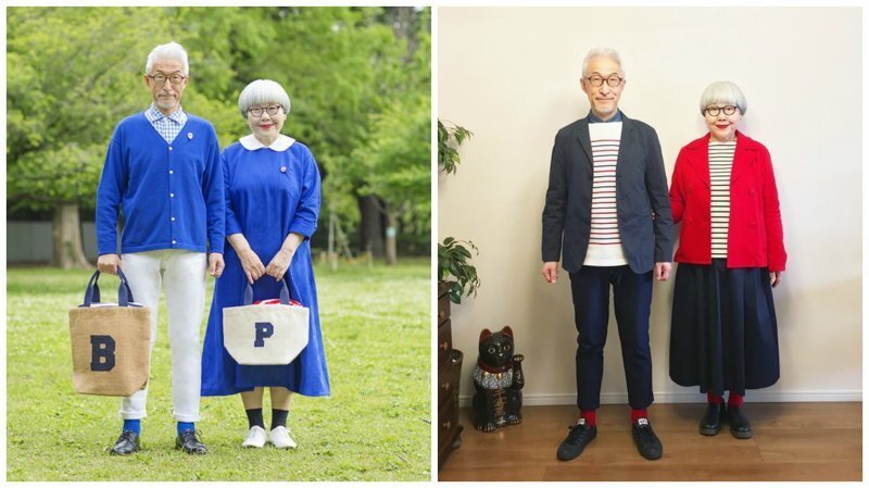 Семейная чета Цунше и Томи Секи, которым уже за 60 лет, прожили больше половины жизни вместе. Они стали настоящими половинками друг друга, поскольку их объединяет не только крепкие чувства, подросшая дочь и общее имущество, но и любовь к парному стилю. Именно, благодаря, своей любви к тщательно подбору повседневного гардероба, пара стала популярна не только в своей стране, но и за рубежом. И это, скажу я вам, выглядит чертовски мило! Азиаты, как никто другие в мире, любят подчеркивать принадлежность друг друга с помощью одежды. Одинаковые футболки, кофты, верхняя одежда и даже обувь на мужчине и женщине - без слов говорят о том, что это пара. И это стало настоящим трендом, открываются даже специализированные магазины, которые продают парные вещи или вещи унисекс. Как делится сама пара, одежду они выбирают по настроению. Но стоит признать, выглядят они стильно. Их стиль это простые линии, четкие цвета(особенно они любят синий и красный), ничего экстравагантного, все прост