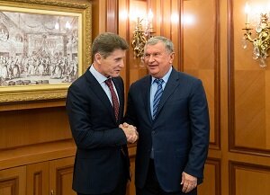 Временно исполняющий обязанности губернатора Приморского края Олег Кожемяко в ходе рабочей поездки встретился с руководством крупнейших компаний, которые ведут деятельность в Дальневосточном регионе. В рамках поездки состоялась встреча с главным исполнительным директором ПАО «НК «Роснефть» Игорем Сечиным, сообщили в компании. Игорь Сечин и Олег Кожемяко обсудили участие товаропроизводителей региона в тендерах предприятий НК «Роснефть» по закупке товаров и услуг. «Необходимо определить перечень предметов и продуктов, которые могут производиться в крае. Для приморцев очень важно более активно участвовать в закупочных процедурах «Роснефти», — отметил Олег Кожемяко. Руководители договорились о расширении сотрудничества «Роснефти» и Приморского края в социальной сфере. В частности, стороны намерены осуществить планы по строительству жилья для сотрудников, задействованных в стратегических проектах «Роснефти». Было достигнуто и соглашение о поставках топлива в «Примтеплоэнерго». По итогам в