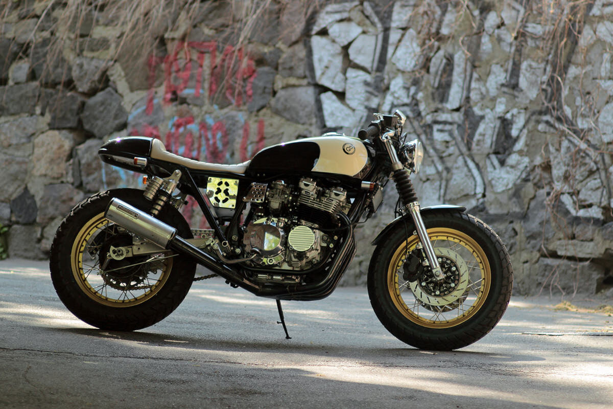 Мы уже привыкли к роскошным кафе-рейсерам, построенным в мастерских Западной Европы. Но сегодня мы рискнем продвинуться дальше на восток. Этот шикарный Yamaha был произведен на свет в Киеве, Украина. Последние время мы часто видели Украину в своих телевизорах по не очень приятным поводам, поэтому будет здорово поделиться хорошими новостями. К счастью, в этой стране есть прекрасная мастерская, где и родился этот очень аккуратный кафе-рейсер. Gazzz Garage Назар Позняковский ездит за рулем мотоциклов с четырнадцати лет, а крутит гайки с семнадцати. Теперь занимается ремонтом и кастомайзингом мотоциклов под брендом Gazzz Garage. Yamaha XJ400 Донором выступил Yamaha XJ400 1979 года, у этого мотоцикла есть определенная история. Десять лет назад Назар купил его, починил и продал. И никогда не ожидал увидеть его снова. Но спустя время, мастер снова услышал об этом мотоцикле, только теперь их разделяло 250 километров. После долгого путешествия по заснеженным дорогам, Назар впихнул мотоцикл в ба
