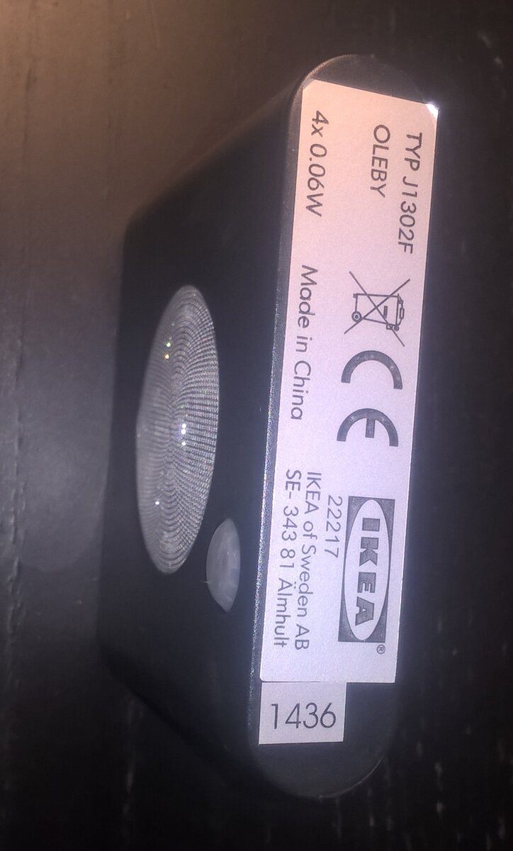Икея выпускает небольшой фонарик с датчиком движения на трех батарейках типа ААА (мизинчиковых) корпус его состоит из двух частей, соединяемых при помощи магнита и металлической пластины (сделано это видимо для удобной замены батареек. На обратной стороне корпуса есть пара крепежных отверстий для крепления к стене и площадка для крепления на двусторонний скотч. К сожалению в процессе эксплуатации выяснилось что фонарик очень любит батарейки. К примеру консультант в магазине обещал что работать один комплект батареек будет минимум полгода на практике же этот срок оказался около месяца. В конце концов менять батарейки для 4 фонариков (4*3=12 батареек) мне надоело и некоторое время фонарики просто висели без дела. Но тут на глаза попалась гроздь зарядных устройств для потерянных или сломаных в разное время телефонов. Как правило напряжение у них около 5 вольт (исключение составляют старые зарядки для NOKIA, там 6 вольт) что лежит в допустимых пределах для фонарика. Сказано сделано! П