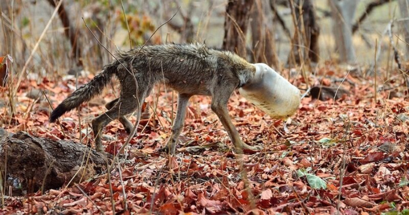 Индийский волк, который попал головой в пластиковую бутылку, оставленную местными жителями в районе озера в Нагпуре, едва не погиб от голода. Его спасли фотографы, приехавшие в лес фотографировать природу и ее «взаимодействие» с человеком. Отчаявшийся волк вышел к ним — из последних сил хищник едва передвигал лапы в надежде на спасение. Позднее фотографы опубликовали снимки — жуткие кадры полуживого волка моментально разлетелись по миру и, вероятно, скоро станут символом акций в защиту окружающей среды. своим спасением волк обязан 26-летнему фотографу-любителю Танаю Панпалия. Мужчина работает бухгалтером в Нагпуре, а в свободное время любит заниматься фотографией. Именно он первым заметил истощенного хищника. При этом Танай рассказывал, что сородичи бедного волка наблюдали за операцией спасения издалека. Стая не уходила, даже когда волка связали приехавшие в лес сотрудники департамента лесного хозяйства. Ехали, к слову, долго — около двух часов. Все это время группа фотографов караули