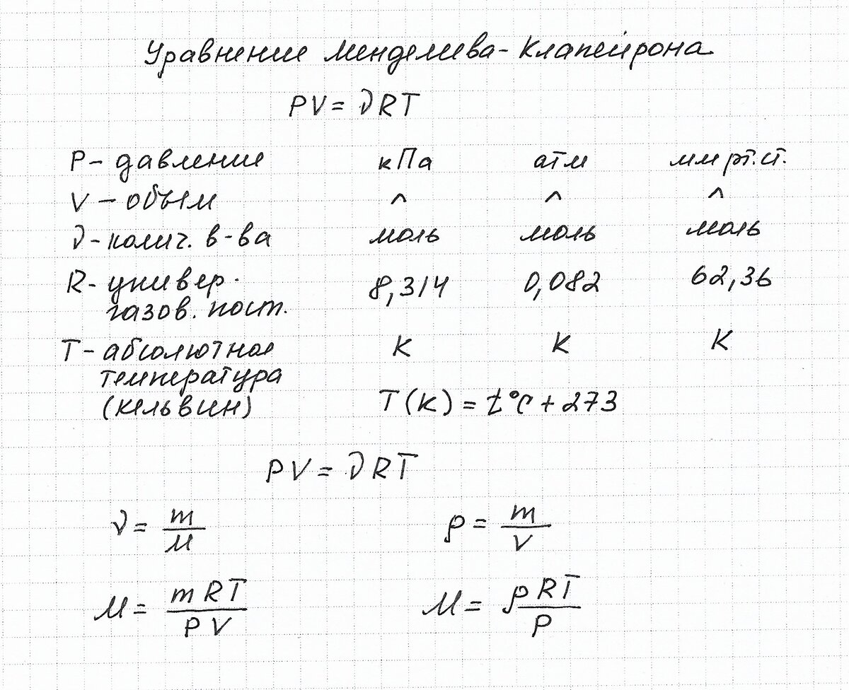 Газы часто бывают реагентами и продуктами в химических реакциях, поэтому возникла необходимость определять число молей газов в любых условиях. Для этого используют уравнение Менделеева-Клапейрона - формулу, устанавливающую зависимость между давлением, молярным объёмом и абсолютной температурой газа.