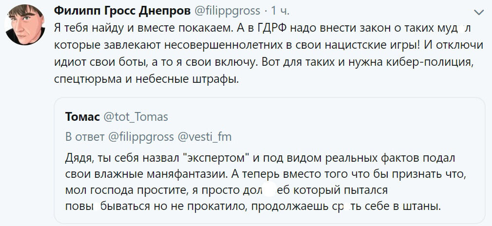 в которой можно "выпускать кишки 10 минут " он сделал такой вывод увидев у террориста пост из паблика связанного с игрой "Dota 2". Не изучив материал, Филипп пошёл на интервью и сморозил бред ,но вместо того чтобы признать свою ошибку и извинится перед аудиторией , у себя в твиттере он начал максимально отстаивать свою идею о причастности игры к теракту , в процессе переключившись с вымышленной "Doka 2" на очень популярную и любую многими "Dota 2 ".