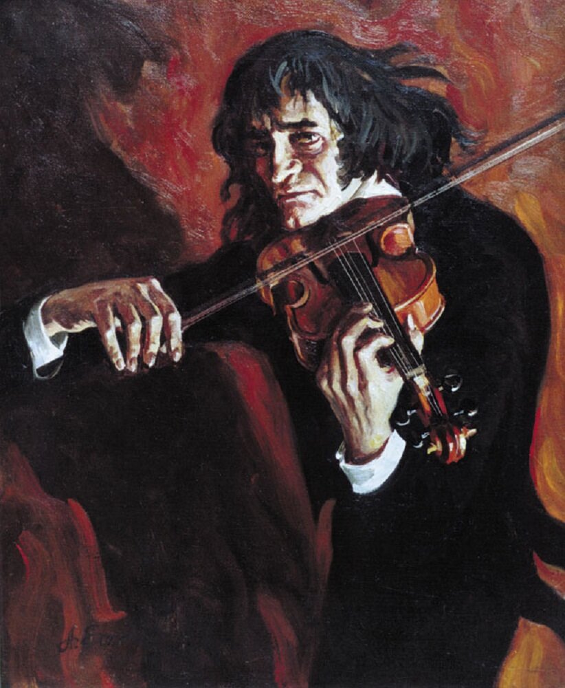 Александр Куприн рассказал легенду о том, как великий скрипач и композитор Николо Паганини, родом венецианец, продал дьяволу свою душу за волшебную скрипку. Очень немилосердна была судьба к молодому Николо в тот год, когда долги, неудачи и сотни мелких неприятностей заставили его бежать из Венеции в Вену, где он — странствующий музыкант — играл на свадьбах или обходил со своей дешёвой скрипкой кабачки последнего разбора. В приличные гостиницы его не пускали по причине его плохой одежды, состоявшей из лохмотьев. Но вопреки всем несчастьям, Паганини никогда не сомневался в своём гении. Однажды к нему в каморку явился дьявол в скромном виде старенького нотариуса или стряпчего, в сером опрятном камзоле со старинными желтоватыми кружевами. Они заключили следующую сделку: Паганини отдал чёрту свою бессмертную душу, а тот отдал ему хорошую одежду, удачный случай и прекрасную скрипку. Когда Паганини заиграл на ней могучую пламенную импровизацию, то он сам впервые понял — какой крылся в н