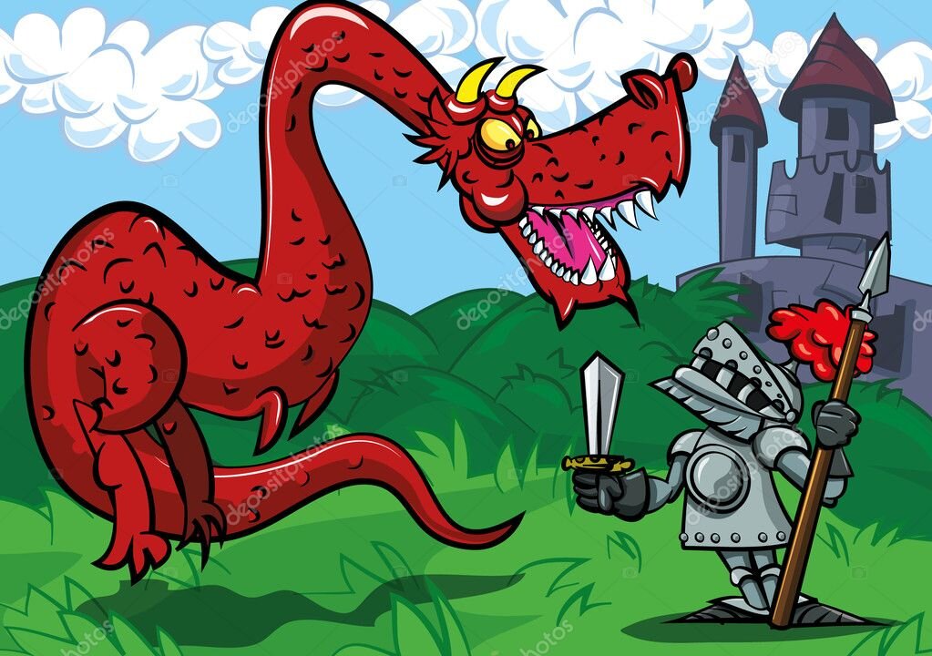 Рыцарь подумал, что нападать на дракона все равно придется, а высказать свои намерения надо обязательно исходя из кодекса рыцаря соблюдать который, пусть даже в отношении дракона святая обязанность каждого рыцаря. (Что то много рыцарей получается) Он оглянулся в поисках оруженосца, но тот справедливо рассудив, что воевать с драконом совсем не его дело, спрятался за скалой. Рыцарь собрался с духом и сказал: