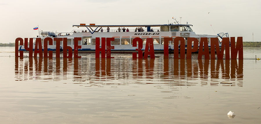 В общем, каким-то образом демонтированные буквы оказались в воде и поднялись вверх по течению: одна — на сто, другая — на двести метров. Одну — подняли и поставили; к сожалению — изнанкой.