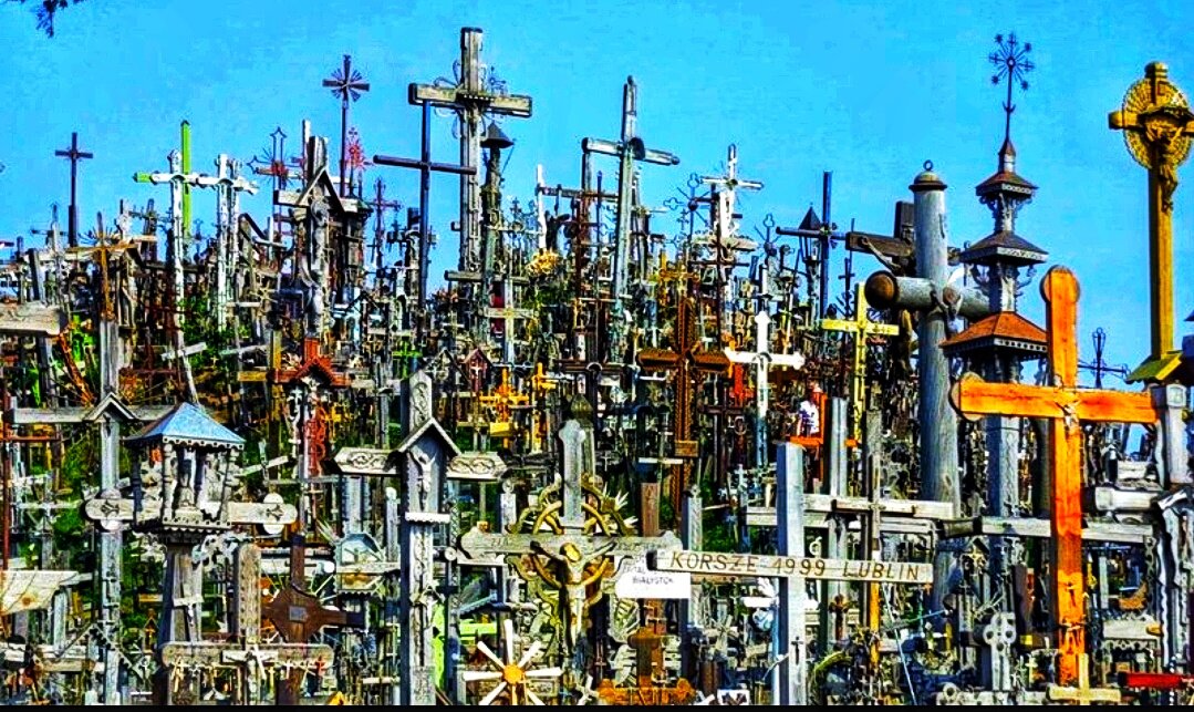Гора крестов, расположенная к северу от города Шяуляй является литовским национальным центром паломничества. На вершине небольшого холма стоят сотни тысяч крестов, что символизирует христианскую набожность и является мемориалом литовской национальной идентичности. Шяуляй был основан в 1236 г. и оккупирован тевтонскими рыцарями в четырнадцатом столетии. Традиция ставить кресты на холме появилась именно в этот период и, возможно, впервые возникла как символ защиты литовцев от иностранных захватчиков. Со времен средневековья Гора Крестов символизировала мирное сопротивление литовского католицизма притеснению. Захваченный немцами в период Второй мировой войны, город был очень сильно разрушен во время его освобождения армией Советского Союза в конце войны. Советские власти неоднократно убирали установленные литовцами кресты с холма. Но после каждого надругательства над святыней, жители и паломники со всей Литвы заново устанавливали новые кресты на священном холме. В 1985г. Гора Крестов б