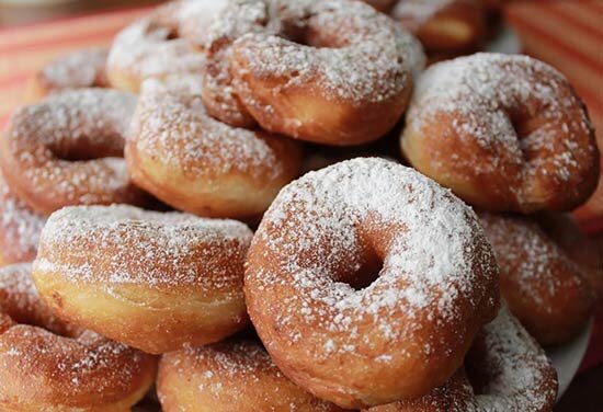 11. В общем-то это почти и всё, теперь пончики обсыпаем сахарной пудрой, подаем к столу и начинаем праздник живота!