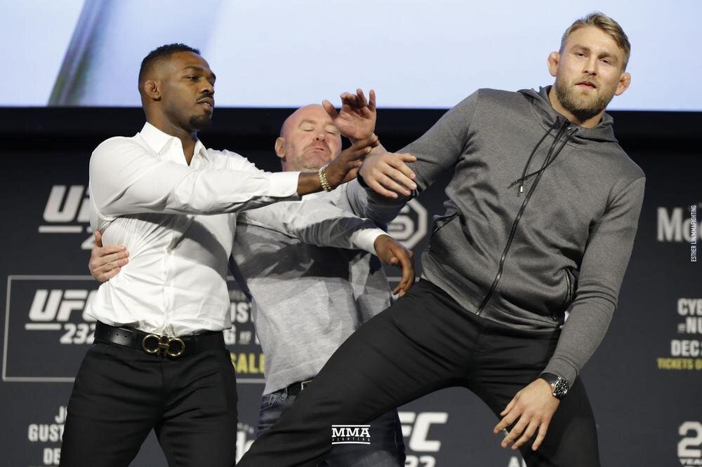 Возвращение величайшего бойца всех времен бывшего чемпиона UFC в полутяжелом весе Джона Джонса само по себе ожидающее событие. А после пресс конференции вражда Джона и его соперника Александра Густафссона еще больше накалилась. Во время стердауна Джонс стал перед шведом, показывая свою важность над соперником, а когда то же самое провернул "Викинг", Джон оттолкнул его в сторону. Дана Уайт вовремя стал между бойцами и не дал продлить потасовку, так что все закончилось лучше, чем могло бы. Напомним, 29 декабря между бойцами пройдет их второй бой, впервые они встретились в 2013 году и тогда Джонс защитил свой пояс, выиграв единогласным решением судей.