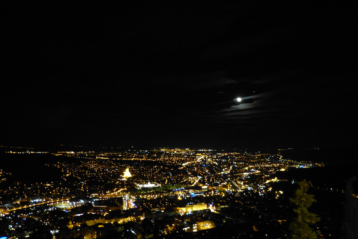 Ещё один символ Тбилиси; тут, кстати, бывали Остап Бендер и Киса Воробьянинов, который же не манж па си жур (простите мой французский, пишу как запомнилась эта фраза в детстве). Кроме ресторана с хорошей и дорогой едой, здесь есть поистине умопомрачительные виды на Тбилиси, причем, как с очевидной фронтальной стороны холма, так и не с очевидной боковой, на телебашню.
