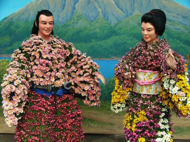 В японской культуре очень ценится искусство, сочетающее в себе мастерство кукольников и живую красоту цветов - искусство создания кукол из хризантем!