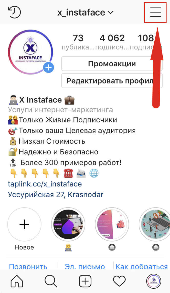 Интерфейс в Инстаграм иногда меняется совсем незаметно, а порой невозможно найти привычные кнопки. И с настройками аккаунта как раз такой случай. Раньше настройки аккаунта можно было найти в самом профиле Инстаграм — три точки наверху Андроид) или шестеренка справа от кнопки «Подписаться» (iPhone). Если у вас пока всё по-старому — поздравляем. Вы нашли, где находятся настройки аккаунта в Инстаграм. Но осенью 2018 настройки убрали чуть подальше. Кто ищет, тот всегда найдёт, правда ведь? Такая логика наверное у дизайнеров. И мы нашли. И вам покажем. 1. Зайдите в свой аккаунт. 2. Нажмите три полоски в верхнем правом углу. 3. Откроется меню. Внизу экрана будет шестеренка и «Настройки». Поздравляем! Вы нашли, где теперь находятся настройки вашего Инстаграм Аккаунта. Что есть в Настройках Инстаграм? КОМПЛЕКСНОЕ РАЗВИТИЕ АККАУНТА В ИНСТАГРАМ ДЛЯ ВАШЕГО БИЗНЕСА