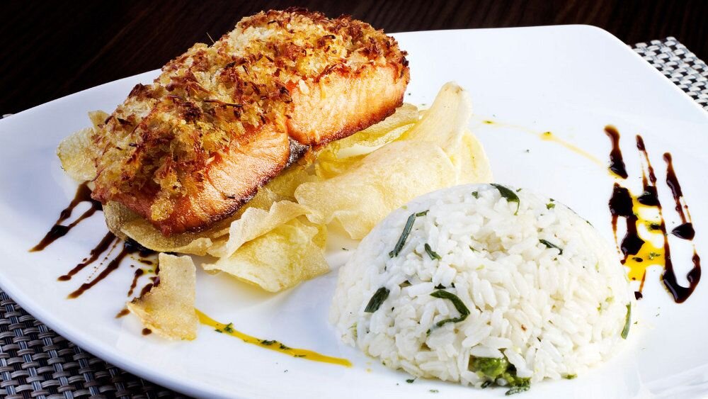 Вы любите семгу? А вы умеете ее готовить? Представляем вашему вниманию рецепт аппетитного стейка из семги с салатом и бурым рисом. Вы полюбите это блюдо. Гарантируем! В одном рецепте мы объединили сразу три: стейк из семги, салат из шпината и гарнир из бурого риса с ароматным соусом. Готовим семгу Для приготовления стейка нам понадобится: Кладем апельсин, клюкву и имбирь в блендер, измельчаем все до состояния однородной кашицы. В полученном маринаде выдерживаем рыбу в течение четверти часа. Разогреваем духовку до 170 оC. Наносим на противень немного масла, выкладываем на него рыбу вместе с остатками маринада, посыпаем ее мелко нарезанным луком. Запекаем наш стейк в духовке 15 минут, затем перекладываем его на нагретую сковороду, смазываем медом и посыпаем все измельченными ядрами грецких орехов. Сковорода нам нужна для того, чтобы мед расплавился. На тарелке нужной консистенции меда можно не получить. Переходим к приготовлению салата Для приготовления блюда нам понадобится: Заменить