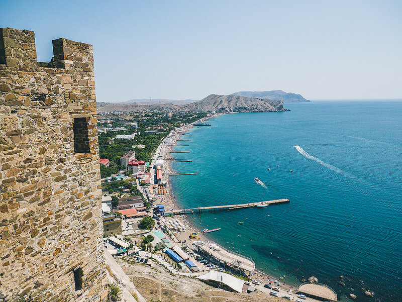 Сюда запрещено подниматься и это на самом деле опасно, но мы с вами знаем – самая красота скрывается в труднодоступных местах. Поэтому отважные авантюристы, у которых хватает смелости, лезут на самую высокую точку крепости. Всего за 150 рублей покупаете билет в Генуэзскую крепость XIV века в Судаке. На беглый осмотр вам хватит примерно час-полтора Будьте готовы к отсутствию навигации, если идете без экскурсии, как я. Хотя она и не нужна, наверное, ведь здесь особо нечего смотреть После входа в врата – вы предоставлены сами себе на степном, выжженом склоне горы с ветшающими стенами и башнями. Советую идти по часовой стрелке: будет плавный подъем по ступенькам и спуск по горной тропинке А сейчас покажу то самое место. Если вы готовы лезть на самую высокую точку крепости в обход запрещающих табличек, то наградой будет: Лезть придется по гладким и скользким камням, без возможности за что-либо уверенно зацепиться руками. Спуск — самое страшное За красивым видом идти строго в кроссовках. Ник