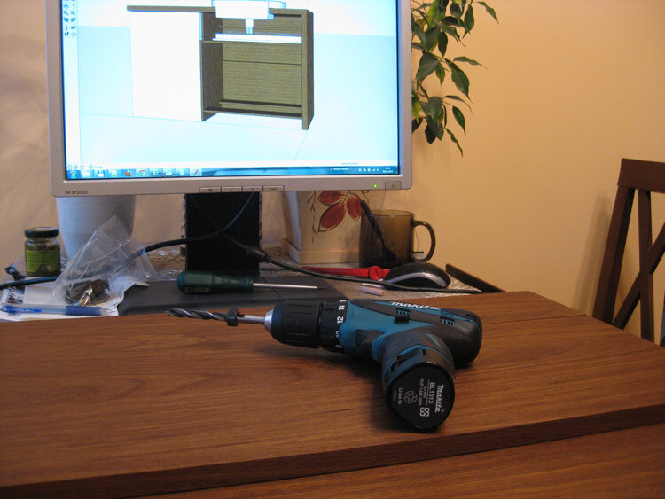 Ну что, все подготовили, погнали собирать! Мой любимый шуруповерт. Он очень удобен. Вот и первая ошибка. Никогда не фиксируйте шканты на клей в середине процесса. Сделаете это, когда все ответные отверстия будут готовы. Сверлим ответки. Используем ограничитель глубины сверления. А здесь показан способ торцевого "копирования" расположения шкантов с одной панели на другую. Крепим направляющие к правой стоевой. Вторая ошибка — никогда не делайте стоевые сборными! 40мм панели — тяжелые. Деревянная поверхность мягкая. Требуется аккуратность. Первая примерка. Blum–овские ящики собирать очень просто. Крепим кронштейны опирания к стене. Когда–то я открыл для себя крепежную продукцию (дюбеля) Fisher. С тех пор ей не изменяю. Удовольствие дорогое, но оно того стоит. Напечатал шаблон под умывальник. Унитаз и умывальник — марки Laufen серия Mimo. Вся продукция данной марки отлично документированна и представлена на сайте. Первый признак качественной продукции — первоклассная доступная документация