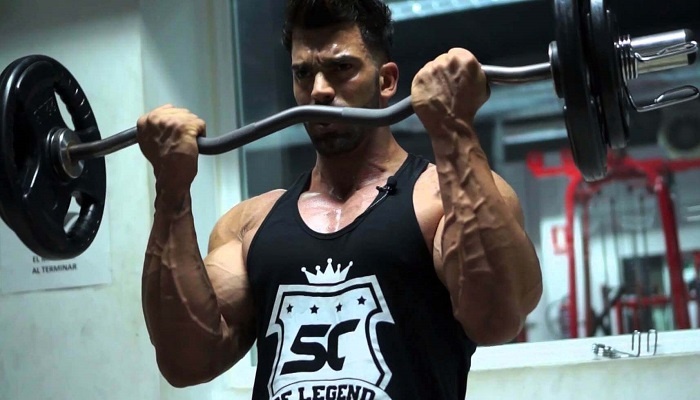 Cгибания рук на скамье Скотта - это лучшее упражнение для построения бицепсов из тех, что я знаю. Мне очень приятно, что это оборудование получило мое имя, хотя его изобрел не я. Однако я уже много лет работаю над его усовершенствованием. Обычная скамья с плоской подставкой под руки не очень удобна, но давайте представим, что у вас есть скамья Скотта. Вот несколько ключевых моментов работы на ней: Самая эффективная система - это три-сеты: берете гантели весом, который позволит вам выполнить шесть повторений, затем штангу весом примерно в 70% от веса гантелей и, наконец, EZ-гриф с весом в 80% от веса гантелей. Например, я использую 30-килограммовые гантели, 45-килограммовую штангу и 55кг на EZ-грифе. Теперь вы готовы к серьезной работе. Лучше всего тренироваться с хорошим напарником, чтобы поддерживать темп тренировки. Начните со сгибаний рук с гантелями на скамье Скотта. Можете положить полотенце на подставку для рук. Это упражнение можно выполнять в нестрогом стиле. Подмышки не долж