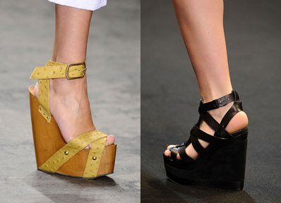 Радует, что мода будущего года не заставляет искать компромисс между красотой и комфортом, ибо благодаря подобным комбинациям подошвы подобная обувь смотрится элегантно и миниатюрно, а сама ножка меньше устаёт. Отметим из новых тенденций так же туфельки-лодочки на высоком и на низком каблуках с острым мыском. Самые же смелые дизайнеры пошли на экстравагантный эксперимент и предложили модницам туфли с прозрачными каблуками.