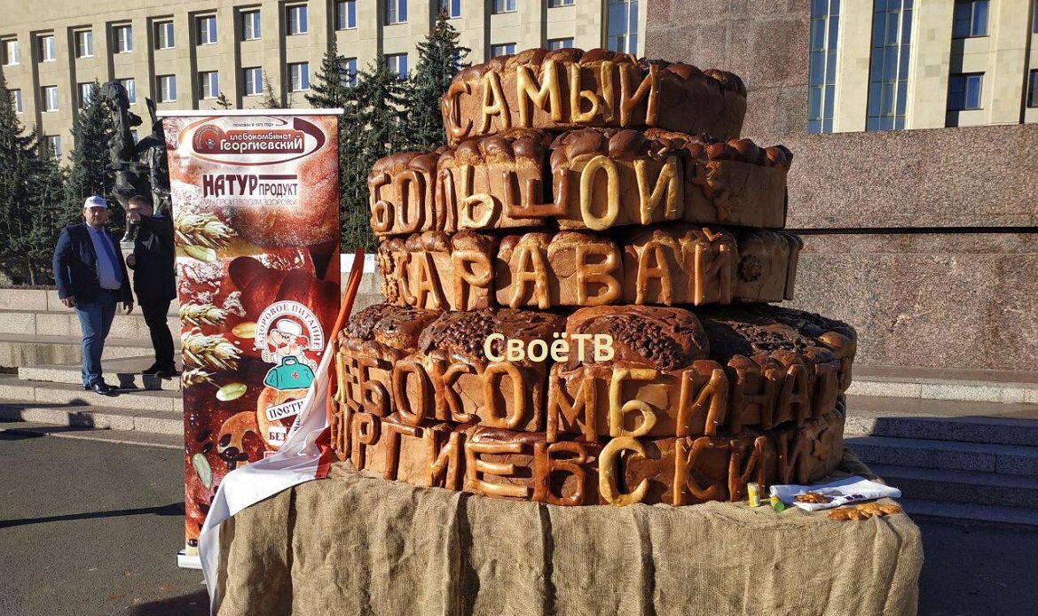 Каравай выпекали неделю. В прямом эфире телеканала «СвоёТВ» исполнительный директор Георгиевского хлебокомбината рассказал о том, как пекари создавали каравай. Чтобы выпечь 561-килограммового гиганта, технологи комбината специально изготавливали формы. В изготовлении каравая были задействованы около 300 человек – все работники предприятия, но больше всего стараний вложила Зинаида Семёновна Воробьёва, титулованный мастер каравайного искусства. В каравае – 3 яруса, каждый декорирован виноградом, яблоками и цветами. После того, как рекорд будет зафиксирован, каравай разрежут и раздадут жителям Ставрополя, которые пришли на площадь Ленина.