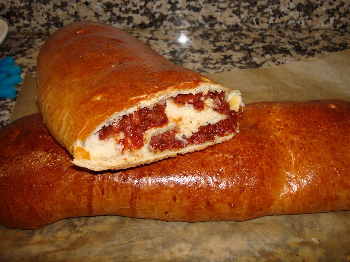 В молоко комнатной температуры добавляем сахар и разводим дрожжи. Даем подняться. Мягкий порубленный на кусочки маргарин смешиваем с мукой и добавляем немного соли – все хорошенько перемешиваем. Соединяем мучную и дрожжевую смеси, затем замешиваем однородное тесто. Оставляем тесто в теплом месте на 30 минут, чтобы оно поднялось. Затем раскатываем в тонкий пласт, смазываем небольшим количеством маргарина и складываем конвертиком. Опять раскатываем тесто и повторяем данную процедуру 3 раза. После этого раскатываем тесто, смазываем вареньем, и сворачиваем рулетом. Кладем рулет на противень застеленный промасленным пергаментом и даем немного отдохнуть, чтобы рулет немного поднялся, 5-7 минут. Как только изделие поднимется, смазываем яйцом и отправляем в разогретую духовку до