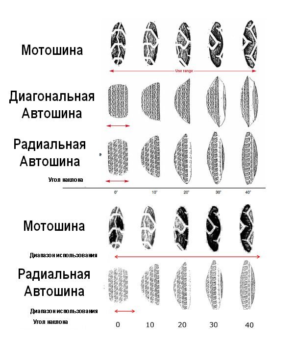 Как всем известно мотоциклетная шина довольно сильно отличается от автомобильной. В первую очередь профилем - она круглая, а не плоская. Специально для того что бы мотоцикл мог наклоняться в поворотах, не теряя при этом зацепа. На картинке видно, что площадь контакта мотошины в наклоне даже растет. Очевидно что в наклоне автомобильное колесо не будет вести себя так же. Кроме того есть отличия в посадочных полках автомобильных и мотоциклетных колес. Плюс к вышесказанному есть и еще список причин почему ставить автошину на мотоцикл не стоит. Это и тип корда, и тип резины, и толщина слоев резины. Ну и работа в наклоне кардинально отличается. Однако как говориться многие знания - многие печали. А если автошина и стоит дешевле и ходит дольше? Именно на этой экономии и родилось поветрие Darkside - установка автошин заместо мотоциклетных. И это отнюдь не единичные примеры. Что бы проверить, как работает автошина на заднем колесе мотоцикла Настоящий Мотоциклист и его друзья не пожалели денег