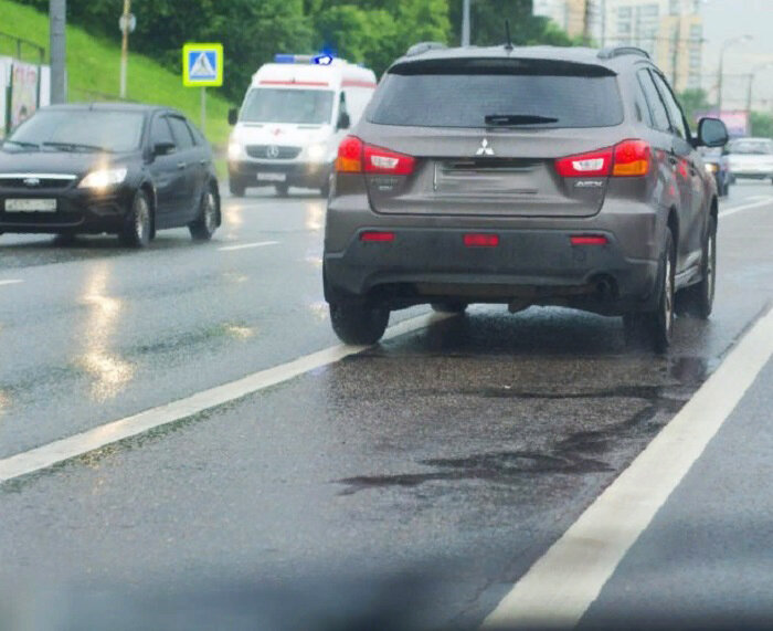 Очень часто такая ситуация возникает, когда впереди едущий автомобиль поворачивает направо. В этом случае, водитель, не снижая скорости, берёт левее и проезжает по сплошной линии, не выезжая на встречную полосу.