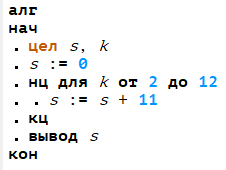 Задача 1. Запишите значение переменной s, полученное в результате работы следующей программы. Решение: переменная k у нас будет меняться в диапазоне от 2 до 12, при этом каждый раз значение переменной s будет становиться на 11 больше. Из условия получается, что k у нас будет иметь 11 значений (2,3,4,5,6,7,8,9,10,11,12). Следовательно чтобы найти переменную s нам надо к текущему значению s одиннадцать раз прибавить число 11 или другими словами 11*11 или 11 возвести в квадрат. В итоге мы получим число 121. Ответ: 121 Задача 2. В таблице Dat хранятся данные измерений роста учеников 4 класса в сантиметрах. (Dat[1] — рост первого ученика, Dat[2] — второго и т.д.). Определите, что будет напечатано в результате выполнения следующего алгоритма: Решение: У нас даны значения роста 10 учеников класса. Значению переменной d присваивается значение роста первого учащегося, переменной n присваивается порядковый номер первого учащегося. Дальше у нас идет условие: если значение роста с