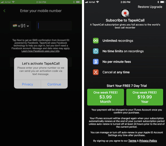 За 3,99 долл. США в месяц или 19,99 долл. США в год вы можете записывать неограниченные вызовы без ограничения продолжительности вызова . Это лучше всего для тех, кто любит проводить длинные телефонные интервью. Приложение имеет бесплатную версию, которая позволяет использовать приложение в течение 7-дневного пробного периода , после чего вам необходимо оплатить вышеупомянутые платежи, если вы хотите продолжать использовать это приложение.