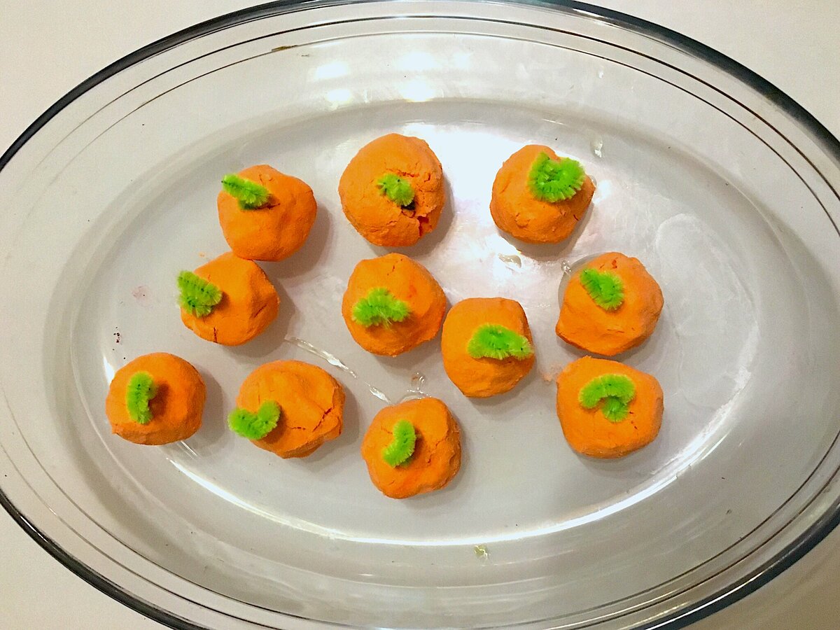 Если ваш ребёнок любит фокусы и разные эксперименты. То дома можно устроить небольшое шоу. Предлагаю сделать содовые тыквочки! Для этого нам потребуется: 2 стакана соды 2/3 воды Цветной краситель Жидкое мыло/фейри Лимонная кислота Соду перемешать с красителем, добавить воды и немного жидкого мыла, все перемешать до тех пор пока не будет отлипать от чаши. Скатать шарики, в них так же можно положить мелкие игрушки, будет шарик с сюрпризом. Все выложить на противень. Синельную проволку разрезать и воткнуть в тыкву и оставить высыхать на 24 часа или убрать на ночь в холодильник. Варианты игр: 1 вариант: На противень капнуть чуть чуть мыла ( если хотите побольше пены) положить тыквы и поливать водой с лимонной кислотой. Поливать лучше пипеткой или шприцем без иглы. Если вылить сразу всю воду, то подниматься много пены и не будет видно как шипят тыквочки. 2 вариант: В большую банку или чашу налить воды, добавить лимонной кислоты и бросать туда тыквочки и смотреть что с ними прои