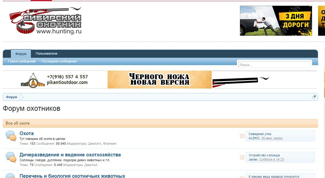 Форум располагается на сайте, посвященном охоте и пользуется большой популярностью. Пользователи ежедневно заходят и оставляют свои вопросы, на которые тут же получают обратную связь.