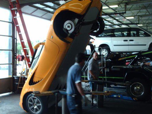 10. Автомобиль упал с подъемника в автомастерской "Ваш автомобиль во время проведения диагностики упал в автосервисе с подъемника". Стоимость ремонта: 0 долларов (если ответственность технического центра застрахована или вы приобрели полис Каско). Если вы этого не сделали, то, возможно ваша машина не подлежит ни какому восстановлению. Причина: Человеческий фактор. Конечно, такое или подобное случается крайне редко, но тем не менее, имеет место быть. В прошлом году в одной только Москве официально зарегистрировано 39 подобных случаев. Это самое худшее, что может произойти с машиной на автосервисе. К нашему счастью, что все специализированные технические центры по ремонту автомобилей имеют сегодня хорошую страховку от несчастных случаев. Но это уже к нашему глубокому сожалению, таких автотехцентров в нашей стране сегодня не очень много. Поэтому, советуем каждому из вас самостоятельно страховать свой автомобиль от различных повреждений и приобретать полис КАСКО. Читайте нас чаще,