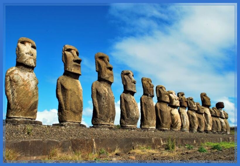 Отдаленный от ближайшего континента на 3000 миль остров Пасхи стал популярен благодаря статуя моаи, которые в количестве 900 штук уже много столетий украшают пустынную поверхность острова. Ученые многих стран уже много лет ломают голову над тем для чего были высечены и возведены статуи моаи на острове. Дата их создания 1200-1500 гг.