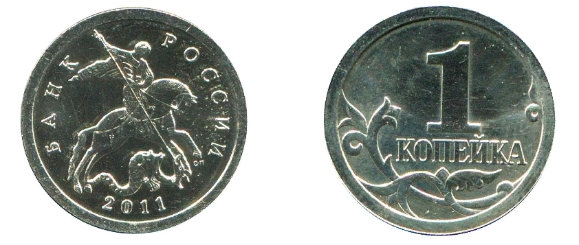 Одна копейка 2011 года известна в единичных экземплярах. Каким-то образом они смогли оказаться вне стен СПМД и его служебных хранилищ. Очевидно, цена в 300 - 400 тысяч рублей, которые готовы заплатить нумизматы за такую монету, способна открыть все двери, даже на таких "закрытых" предприятиях как Санкт - Петербургский монетный двор. Очень редкий и поэтому, дорогой экземпляр. Достать его почти невозможно. И на аукционных нумизматических площадках копейку 2011 года также не продают. Разве что копии или подделки. Пополнить свою коллекцию таким раритетом мечта каждого коллекционера. Ходят слухи о наличии всего пары штук данного раритета. Некоторые нумизматы утверждают, что цена на нее около 300 – 400 тысяч рублей. В оборот монетка не поступала и чеканилась только на Санкт – Петербургском монетном дворе. Под передними копытами коня можно увидеть две буквы «С — П», разделенные черточкой. Обладает такими техническими характеристиками: масса 1,5 грамм, диаметр 15,5 миллиметров, толщина 1,25
