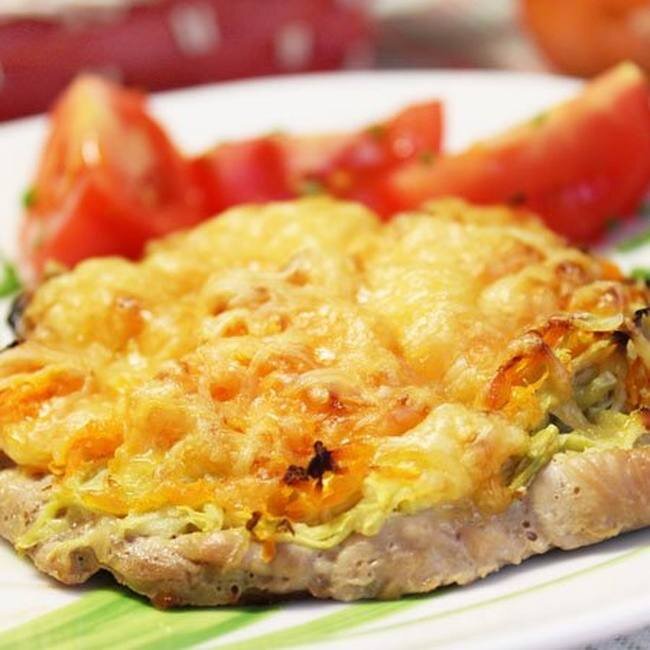 Отбивные из индейки, запеченные с тертой морковкой и чесноком под сыром, отлично разнообразят рацион и станут отличным дополнением к любому гарниру. Ингредиенты: