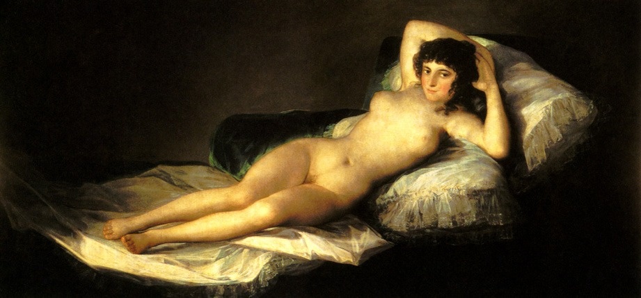 Дама нарисованная на картине является воплощением страсти и похоти. Рисуя обнаженную женщину, художник хотел показать далеко не классический образ. Женщина нарисована на темном фоне, к удивлению это не спроста. Автор картины тем самым привлекает внимание только на формы, очертания женщины - остальное неважно. Главная идея картины передать эротический смысл, а не пыл, страсть, тем самым завлекая зрителя. Благодаря одному из писателей (Лион Фейхтвангер, автор "Гойя"), по всему свету пошли слухи о том, что изображенная женщина на картине - это герцогиня Альба. Одна из версий почему пошли такие мысли: в то время, одна из распространенных гипотез: "Если голова написанной женщины кажется "чужой" (как бы наложенной на тело), значит автор скрыл кого-то из своих подруг, оставив тело - оригиналом) Спустя время, наследники герцогини Альбы решили расставить все точки на И, чтобы избавиться от слухов. В результате была произведена эксгумация останков, итог был следующим: результаты измерений не