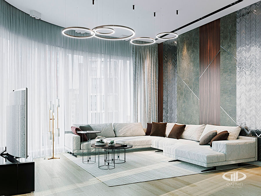 Разработкой дизайн-проекта четырехкомнатных апартаментов для семьи из 3 человек занималась Елена Аникина. Это талантливый ведущий дизайнер «ОлимпСтройСервиса», хорошо известная в качестве автора нестандартных решений оформления частных домов и квартир разного размера. Все работы выполняли опытные специалисты компании, демонстрируя слаженность действий и творческий подход к решению поставленных задач.