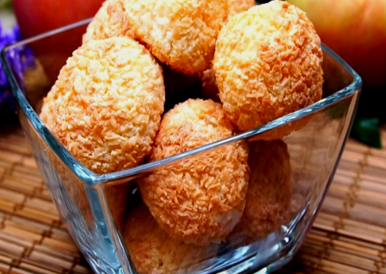 Берем ложкой тесто и смоченными руками формируем шарики. Выкладываем на противень с пергаментом. Готовим в разогретой духовке при 180 градусах. Запекаем до легкой румяности примерно 12-15 минут. Следите чтобы не пересушить. Даем немного остыть и подаем к столу. Приятного Вам аппетита!