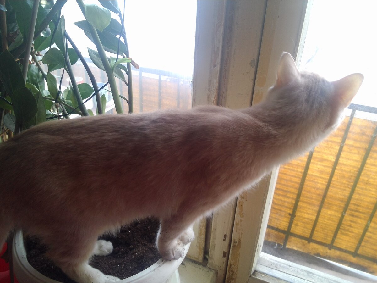 Мои коты очень любят лежать в вазонах и для меня это большая проблема. Но интернет, наблюдения и смекалка подсказали несколько вариантов как бороться с этой проблемой. Вариант 1, которым я спасаю маленькие неокрепшие растения от лишнего внимания кошачьих: достаточно плотно размещаю зубочистки в землю в горшочках. Эти деревянные палочки будут мешать коту комфортно устроиться в вазоне. Вариант 2, подходит не только для вазонов, но и как средство отучить четвероногого друга лазать по запретным местам: обычный скотч, закрепленный липкой стороной вверх. Этот метод я использовала на полках стеллажа на первой неделе, чтобы каждый из кошариусов успел проверить своими лапами, что именно на эту полку лезть не надо. Есть минус - приходилось переодически поправлять скочт, оторванный при резких прыжках, но как временная мера очень даже ничего. Вариант 3, мой самый любимый: на кухне, где у меня обитали ранее пару вазонов был установлен нежилой горшок с землей, в котором коты по очереди спали, сиде