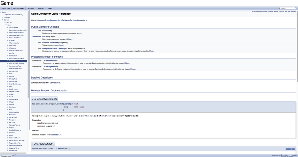 Потом, с помощью таких XML комментариев можно сгенерировать документацию всего проекта. Например, с помощью Doxygen. Скармливаем Doxygen папку со скриптами и на выходе получаем что-то такое: