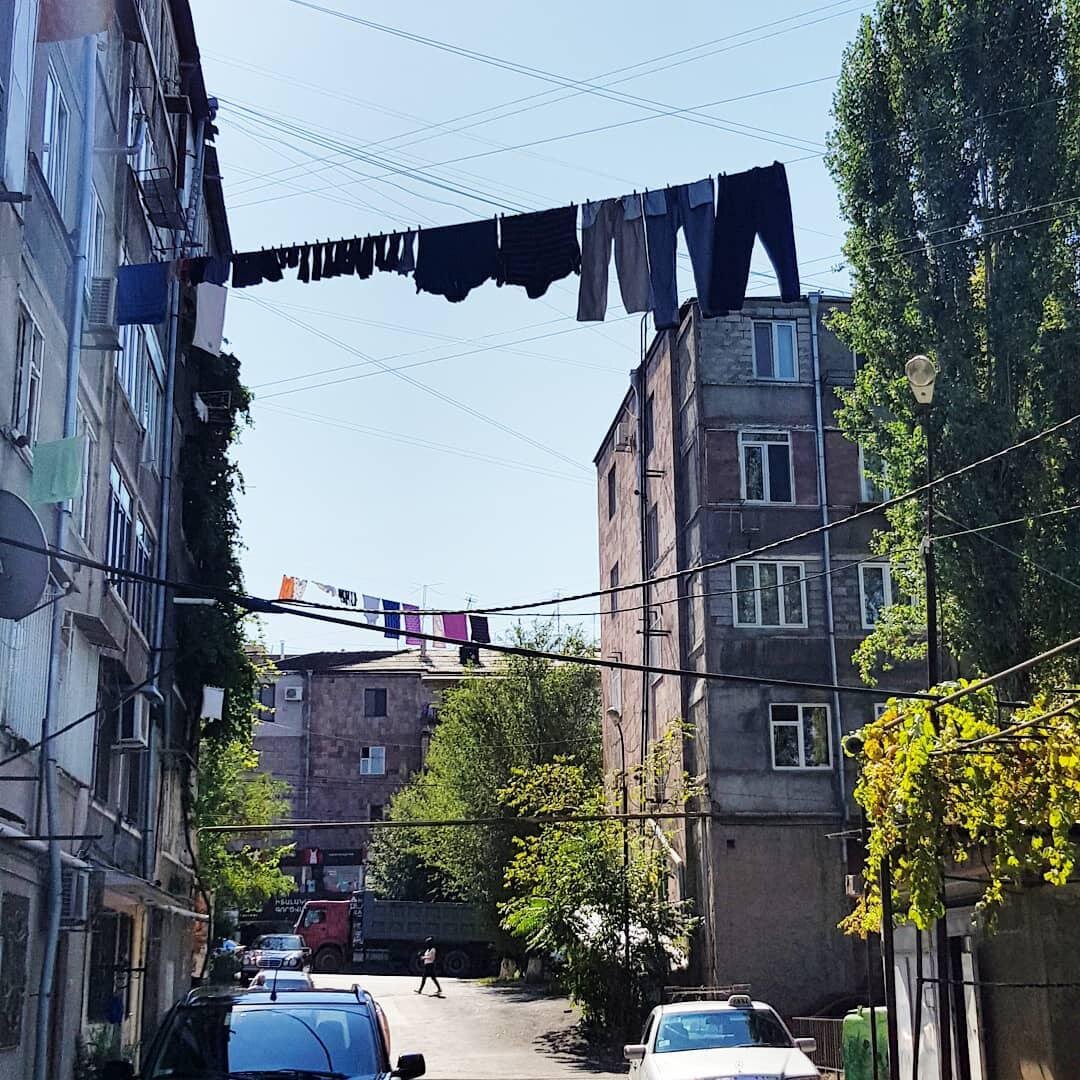 Посещая столицу Армении, многие отправляются в центр города, а то и вовсе прочь из Еревана и поближе к природе. У нас было немного времени и мы прогулялись по дворам Еревана, которые заслуживают особого внимания. Они могут рассказать намного больше о столице Армении и самой стране, чем, например, туристический Каскад или центральные улицы, вылизанные для туристов. Дворы Еревана очень напоминают Россию: ✔своими панельными домами в 5-9 этажей с оконными рамами на любой вкус и цвет ✔переделанными балконами, которые, порой, выпирают больше, чем было задумано архитектором ✔гаражами, некоторые из которых выглядят лучше, чем сам дом ✔частными домами, соседствующими с многоэтажными домами И отличаются: 🏡беседками из виноградной лозы 🏡отсутствием большого количества машин 🏡мужчинами, которые играют в шахматы или в нарды в тени деревьев, как в старых советских фильмах 🏡отсутствием центрального отопления 🏡арками, расписанными картинами в разных стилях 🏡обилием бельевых веревок и бельем, кот