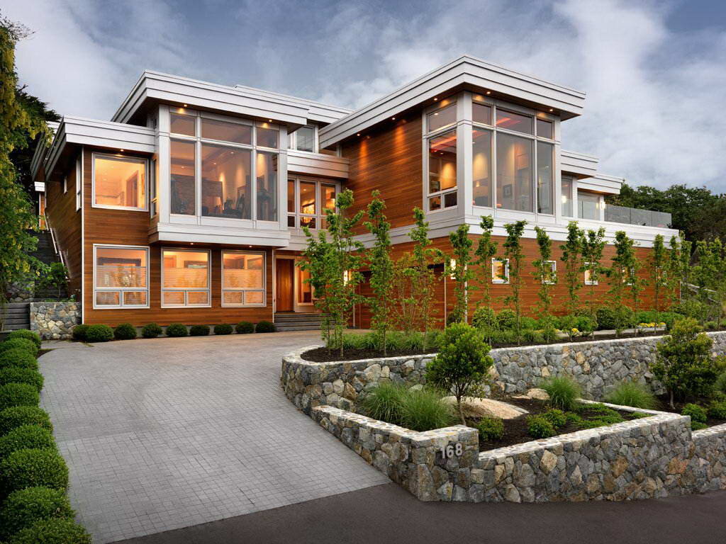 Этот яркий, узнаваемый дом построен на высоком участке с видами на пролив Джорджии. Архитекторам удалось совместить фантастические особенности участка (доминирующее положение, лёгкий наклон, густой лес вокруг и великолепный вид на расположенный внизу пролив) с преимуществами традиционных материалов (дерево и камень). У дома стильный и легко узнаваемый североамериканский фасад, тёплый интерьер, большие окна и богатый многоуровневый ландшафт. Название: Дом Хиллкрест (Hillcrest House)