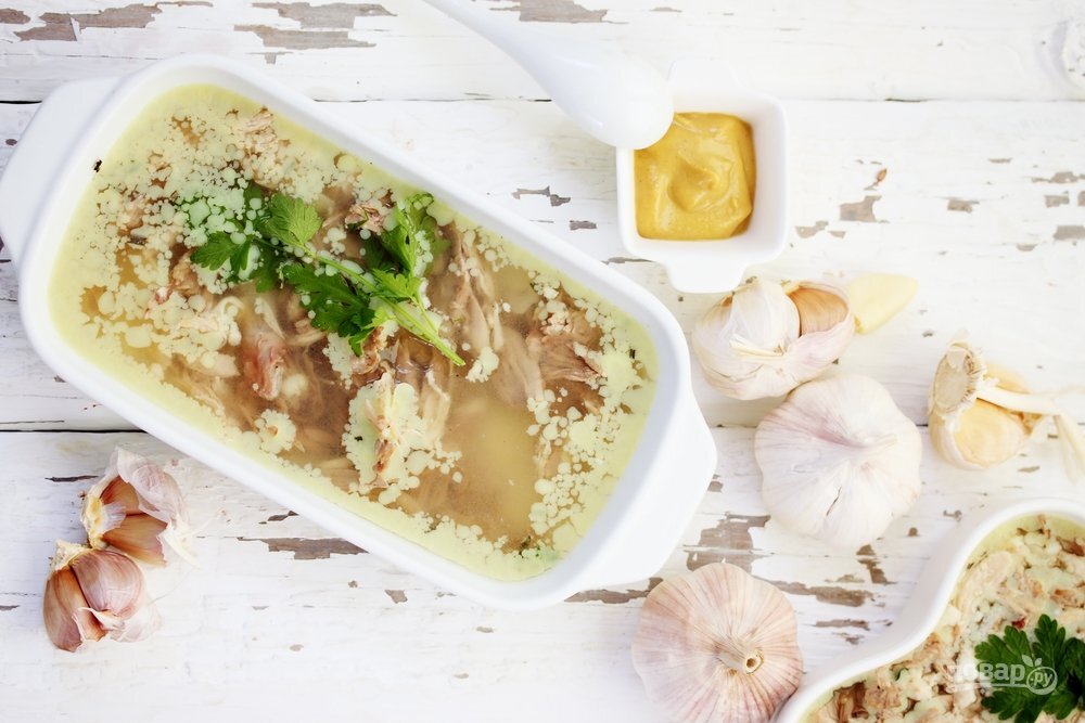 Студень, а как еще говорят в народе холодец, обожают представители многих народов мира. В России особенно прижилась традиция готовить это блюдо в новогодние праздники, и кажется, что рецепт стал поистине русским. Если вы еще не знаете, как варить холодец, воспользуйтесь этой простой и понятной инструкцией, и у вас точно все получится. В конце статьи представлены ссылки на пошаговые рецепты приготовления холодца: классического мясного, из говядины и курицы, из куриных окорочков с агар-агаром, из свиных ножек. Этот рецепт хорош тем, что для приготовления блюда вам не потребуется желатин, так как бульон получается очень жирным и наваристым, а также используется все мясо, и ничего, кроме костей, не утилизируется. Варить холодец будем в обычной кастрюле. Сразу заметим, что в скороварке холодец вариться не более 1,5 часов, а в остальном приготовление в скороварке ничем не отличается от готовки в кастрюле. Ингредиенты: Для начала набираем в большую кастрюлю воды, укладываем в не